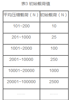 2、将预处理后的试样封装好,放置在纸箱抗压试验机的下压板中心,如图1。若采用“定压力测形变”模式,则需设置预定压力(“定形变测压力”模式则需预设形变量)、初始载荷值等参数,并调整高度参数至试样高度值,其中初始载荷值的设定是为了使上压板与试样达到充分接触,可参照表3进行设置。启动试验,上压板在系统的控制下以适当的速度向下运行,当试样所受的压力达到初始载荷值时,位移量自动清零,当压力继续增大至设定压力值时,仪器自动结束试验,并显示试样的变形量。而“压溃”模式则无需压力和位移量设置,试样所承受的压力值曲线不断上升,在试样压溃的节点达到峰值后开始下降,当压力值降到最大值的70%时,自动结束试验。